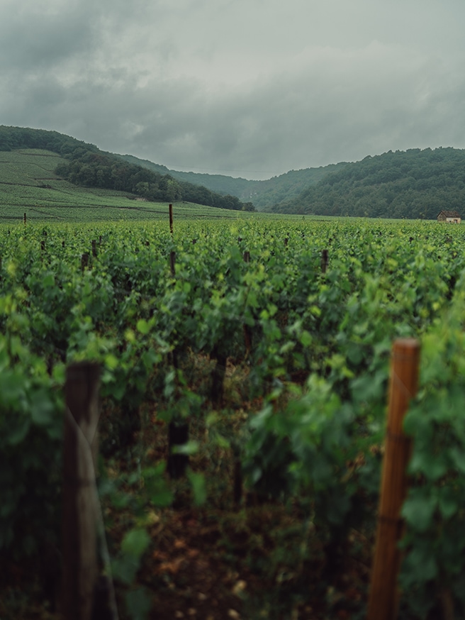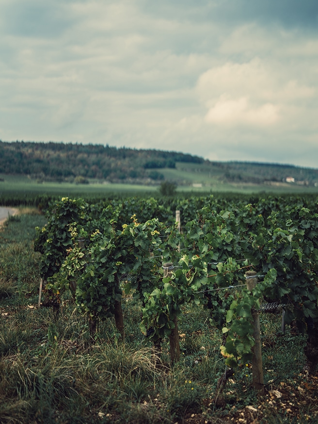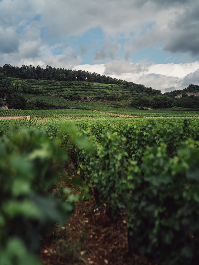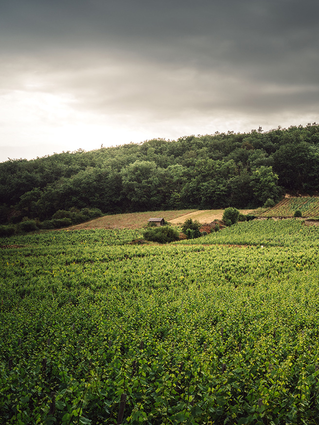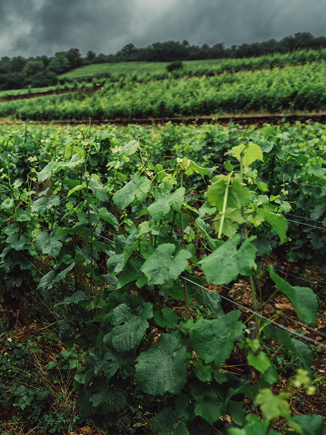 Un assemblage de trois lots : la parcelle « Les Vigneux » de 0,35 hectare, ainsi que nos jeunes plants sur la commune de Vosne-Romanée et le fruit de vignes issues d’une sélection plus rigoureuse de notre parcelle « Aux Brûlées » classée en Premier Cru.